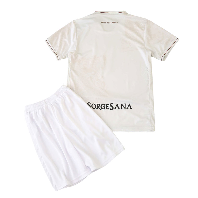 Giv dit barn muligheden for at spille som sine idoler med SSC Napoli udebanetrøje 2025/26 til børn – et komplet fodboldsæt med trøje og shorts i moderne design. Den stilrene sandfarvede børnefodboldtrøje har kobberdetaljer og et unikt mønster inspireret af Napolis kultur og historie, som gør den både flot og speciel.