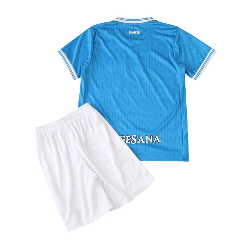 Fodboldsættet er behageligt at have på til både leg, træning og kamp, og det kan tilpasses med eget navn og nummer på ryggen. Hurtig levering gør det nemt at få fat i denne Napoli børne hjemmebanetrøje 2025/26, der er et must-have for enhver lille fan.